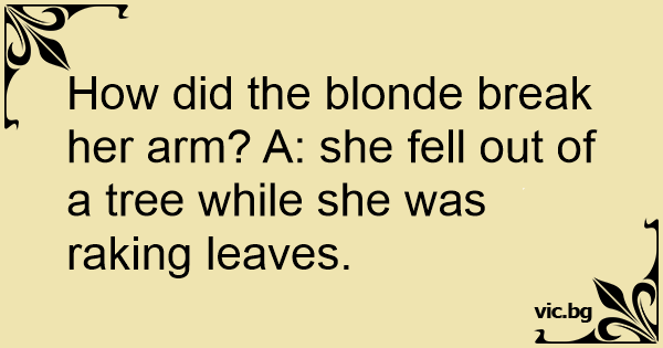 How did the blonde break her arm? A: she fell out of a tree while she was raking leaves.