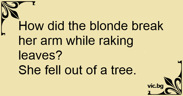 How did the blonde break her arm while raking leaves?