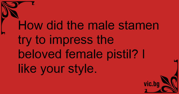 How did the male stamen try to impress the beloved female pistil? I like your style.
