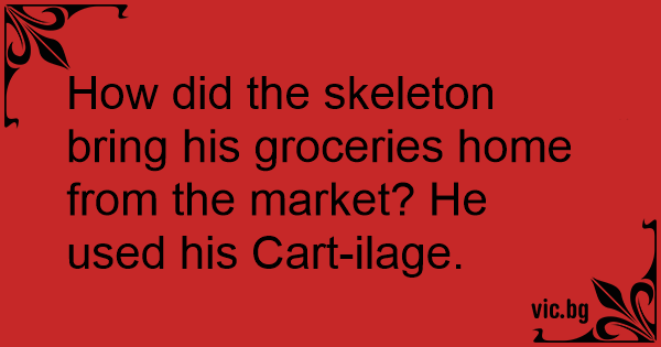 How did the skeleton bring his groceries home from the market? He used his Cart-ilage.