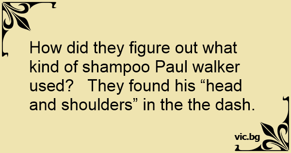 How did they figure out what kind of shampoo Paul walker used? They found his “head and shoulders” in the the dash.