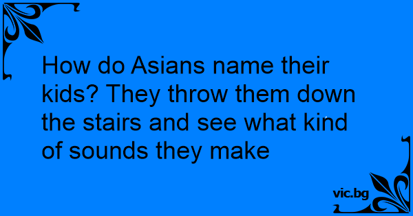 How do Asians name their kids? They throw them down the stairs and see what kind of sounds they make
