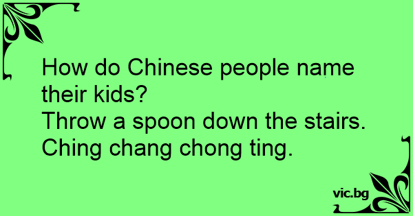 How do they name Chinese baby's? They throw silverware down the stairs until they hear something they like.