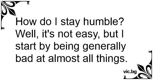 How do I stay humble? Well, it's not easy, but I start by being generally bad at almost all things.