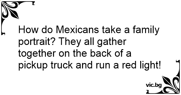 How do Mexicans take a family portrait? They all gather together on the back of a pickup truck and run a red light!