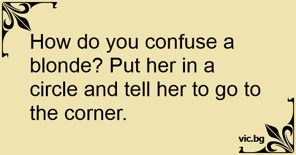 How do you confuse a blonde? Put her in a circle and tell her to go to the corner.