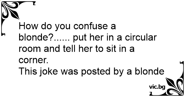 How do you confuse a blonde?...... put her in a circular room and tell her to sit in a corner.