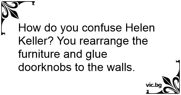 How do you confuse Helen Keller? You rearrange the furniture and glue doorknobs to the walls.