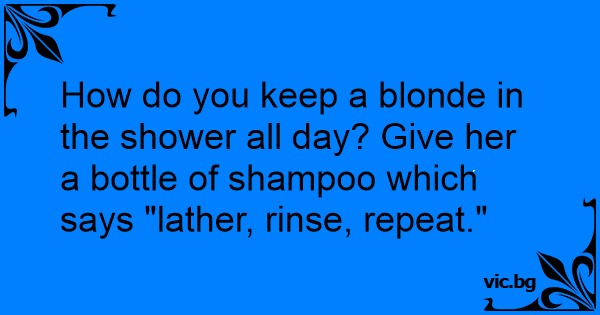 How do you keep a blonde in the shower all day? Give her a bottle of shampoo which says "lather, rinse, repeat."