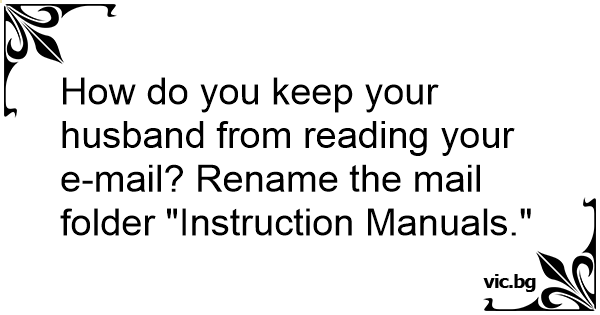 How do you keep your husband from reading your e-mail? Rename the mail folder "Instruction Manuals."