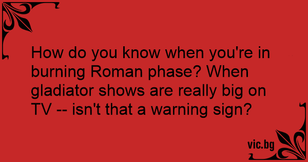 How do you know when you're in burning Roman phase? When gladiator shows are really big on TV -- isn't that a warning sign?