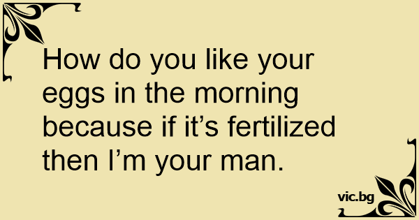 How do you like your eggs in the morning because if it’s fertilized then I’m your man.