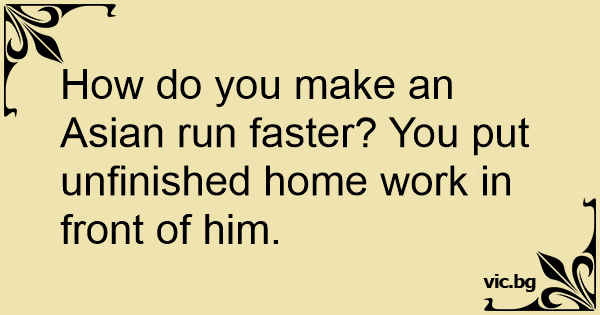 How do you make an Asian run faster? You put unfinished home work in front of him.