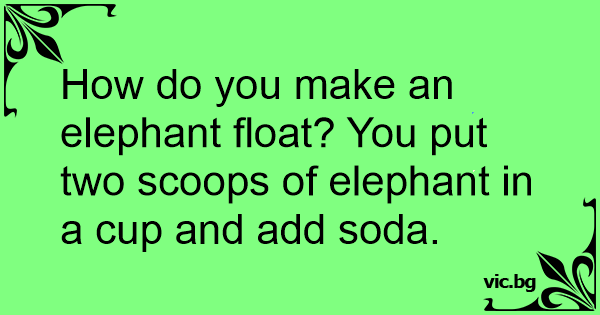 How do you make an elephant float? You put two scoops of elephant in a cup and add soda.