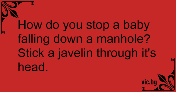 How do you stop a baby falling down a manhole? <br />Stick a javelin through it's head.