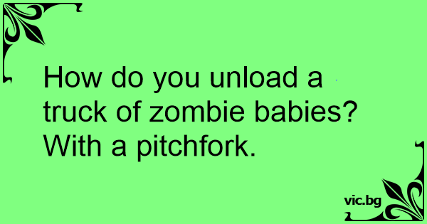 How do you unload a truck of zombie babies? <br />With a pitchfork.