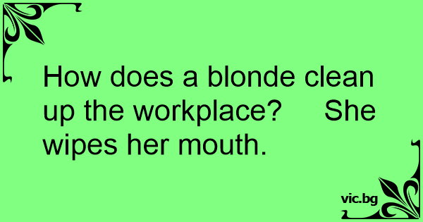 How does a blonde clean up the workplace? She wipes her mouth.