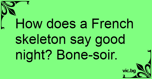 How does a French skeleton say good night? Воnе-soir.