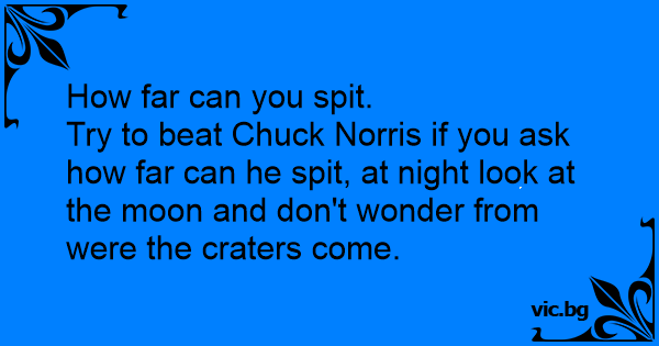Try to beat Chuck Norris if you ask how far can he spit, at night look at the moon and don't wonder from were the craters come.