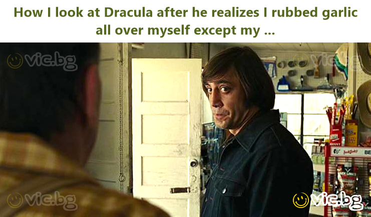 Как гледам Дракула, след като е разбирал, че съм се натъркал с чесън навсякъде, освен ....