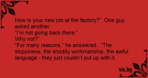 “For many reasons,” he answered. “The sloppiness, the shoddy workmanship, the awful language - they just couldn’t put up with it.