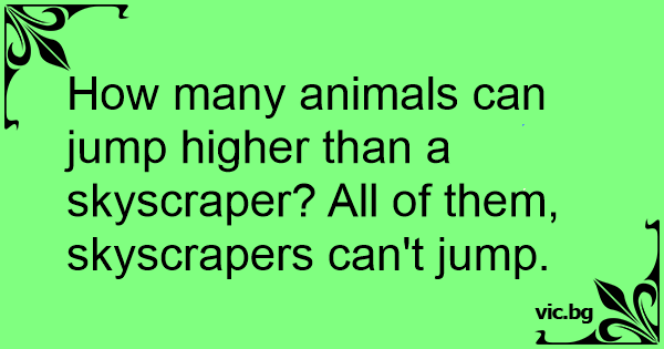How many animals can jump higher than a skyscraper? All of them, skyscrapers can't jump.