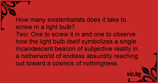 How many existentialists does it take to sсrеw in a light bulb?