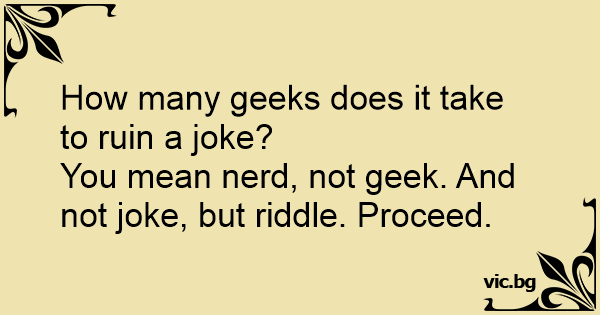 You mean nerd, not geek. And not joke, but riddle. Proceed.