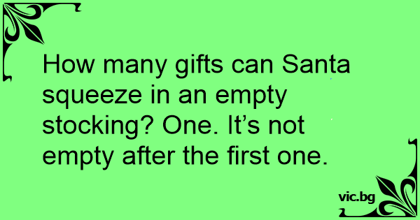 How many gifts can Santa squeeze in an empty stocking? One. It’s not empty after the first one.