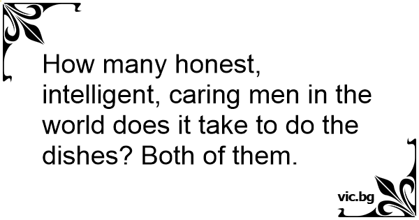 How many honest, intelligent, caring men in the world does it take to do the dishes? Both of them.