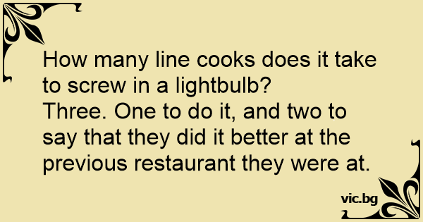 How many line cooks does it take to sсrеw in a lightbulb?