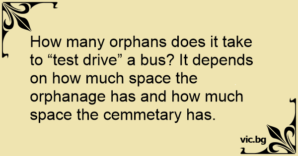 How many orphans does it take to “test drive” a bus? It depends on how much space the orphanage has and how much space the cemmetary has.