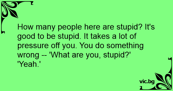 How many people here are sтuрid? It's good to be sтuрid. It takes a lot of pressure off you. You do something wrong -- 'What are you, sтuрid?'