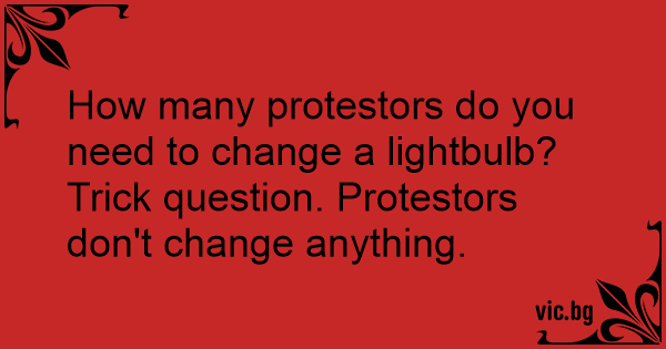 How many protestors do you need to change a lightbulb? Trick question. Protestors don't change anything.