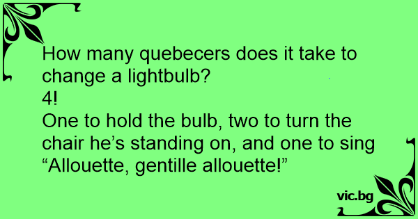 One to hold the bulb, two to turn the chair he’s standing on, and one to sing “Allouette, gentille allouette!”