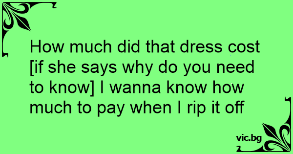 How much did that dress cost [if she says why do you need to know] I wanna know how much to pay when I rip it off