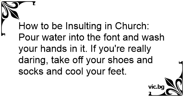 How to be Insulting in Church: Pour water into the font and wash your hands in it. If you're really daring, take off your shoes and socks and cool your feet.
