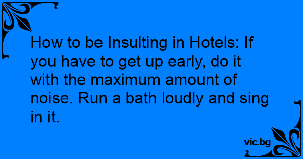How to be Insulting in Hotels: If you have to get up early, do it with the maximum amount of noise. Run a bath loudly and sing in it.