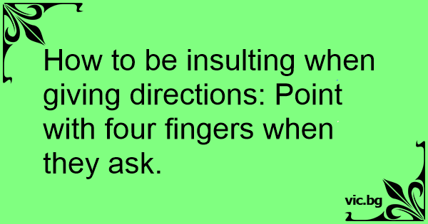 How to be insulting when giving directions: Point with four fingers when they ask.