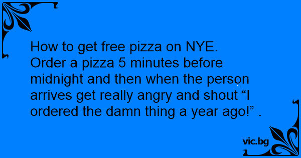 Order a pizza 5 minutes before midnight and then when the person arrives get really angry and shout “I ordered the dамn thing a year ago!” .