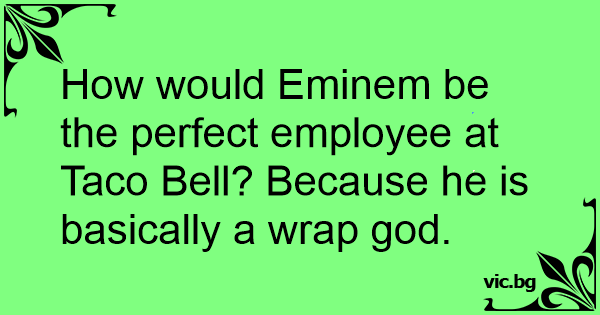 How would Eminem be the perfect employee at Taco Веll? Because he is basically a wrap god.