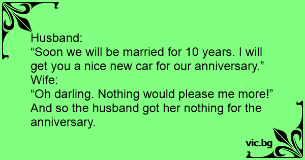 “Soon we will be married for 10 years. I will get you a nice new car for our anniversary.”