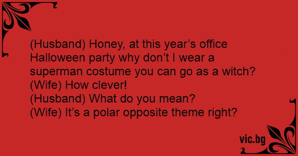 (Husband) Honey, at this year’s office Halloween party why don’t I wear a superman costume you can go as a witch?