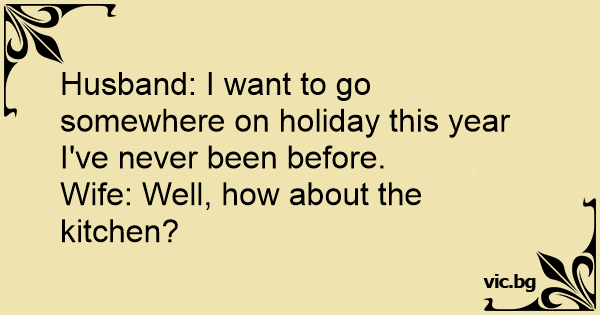 I asked my wife, "Where do you want to go for our anniversary?" She said, "Somewhere I have never been!" I told her, "How about the kitchen?"