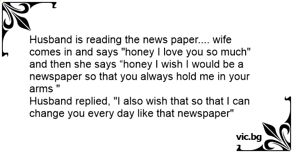 Husband is reading the news paper.... wife comes in and says "honey I love you so much" and then she says “honey I wish I would be a newspaper so that you always hold me in your arms "