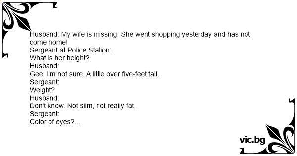 Husband: My wife is missing. She went shopping yesterday and has not come home!