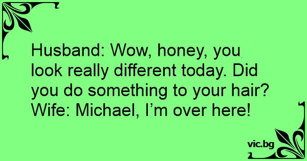 Husband: Wow, honey, you look really different today. Did you do something to your hair?