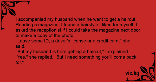 I accompanied my husband when he went to get a haircut. Reading a magazine, I found a hairstyle I liked for myself. I asked the receptionist if I could take the magazine next door to make a copy of the photo.