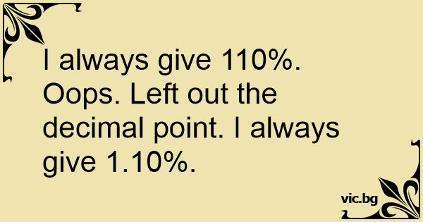 I always give 110%. Oops. Left out the decimal point. I always give 1.10%.