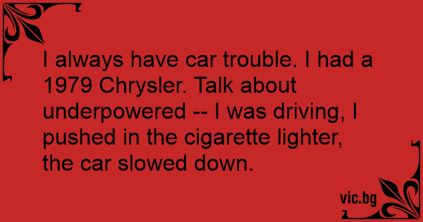 I always have car trouble. I had a 1979 Chrysler. Talk about underpowered -- I was driving, I pushed in the cigarette lighter, the car slowed down.